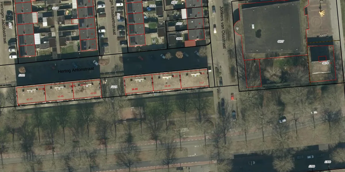 Het adres ligt op het perceel OSS00-K-1221, dat zich in de kadastrale gemeente Oss bevindt. De gemiddelde perceelgrootte in Oss is 2394,22 m². Dit perceel is kleiner: de perceeloppervlakte bedraagt 2011 m². Het grootste perceel in de kadastrale gemeente is 36,1 ha. Het kleinste perceel heeft een oppervlakte van 0 m². Op het perceel zijn 81 adressen aanwezig. De laatste wijziging in het de Basisregistratie Kadaster (BRK) was op 01-09-2011.