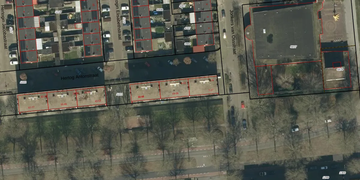 Het adres ligt op het perceel OSS00-K-1221, dat zich in de kadastrale gemeente Oss bevindt. Het perceel is kleiner dan gemiddeld in Oss. Het perceel is 2011 m² groot, terwijl het gemiddelde ligt op 2394,32 m². Het kleinste perceel in de kadastrale gemeente is 0 m² groot. De grootste perceeloppervlakte is 36,1 ha. Op het perceel zijn 81 adressen aanwezig. In de Basisregistratie Kadaster (BRK) werden de grenzen van het perceel geregistreerd op 01-09-2011.