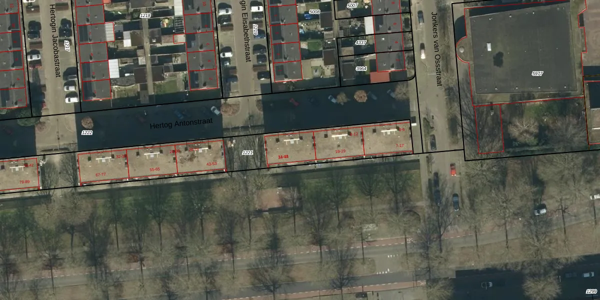 Het adres ligt op het perceel OSS00-K-1221, dat zich in de kadastrale gemeente Oss bevindt. Het perceel is 2011 m² groot. Dat is kleiner dan de gemiddelde perceeloppervlakte in Oss, dat op 2394,22 m² ligt. Het kleinste perceel in de kadastrale gemeente is 0 m² groot. De grootste perceeloppervlakte is 36,1 ha. Er zijn 81 adressen aanwezig op het perceel. De laatste wijziging in het de Basisregistratie Kadaster (BRK) was op 01-09-2011.