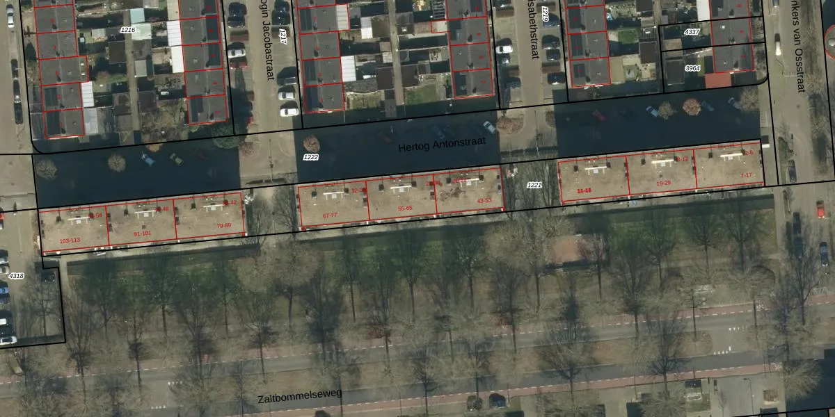Het adres is gelegen op perceel 1221 in de sectie K en de kadastrale gemeente Oss. De kadastrale aanduiding is aldus OSS00-K-1221. Het perceel is kleiner dan gemiddeld in Oss. Het perceel is 2011 m² groot, terwijl het gemiddelde ligt op 2394,32 m². De grootste perceeloppervlakte in de kadastrale gemeente is 36,1 ha. De kleinste oppervlakte bedraagt 0 m². Op het perceel zijn 81 adressen aanwezig. De laatste wijziging in het de Basisregistratie Kadaster (BRK) was op 01-09-2011.