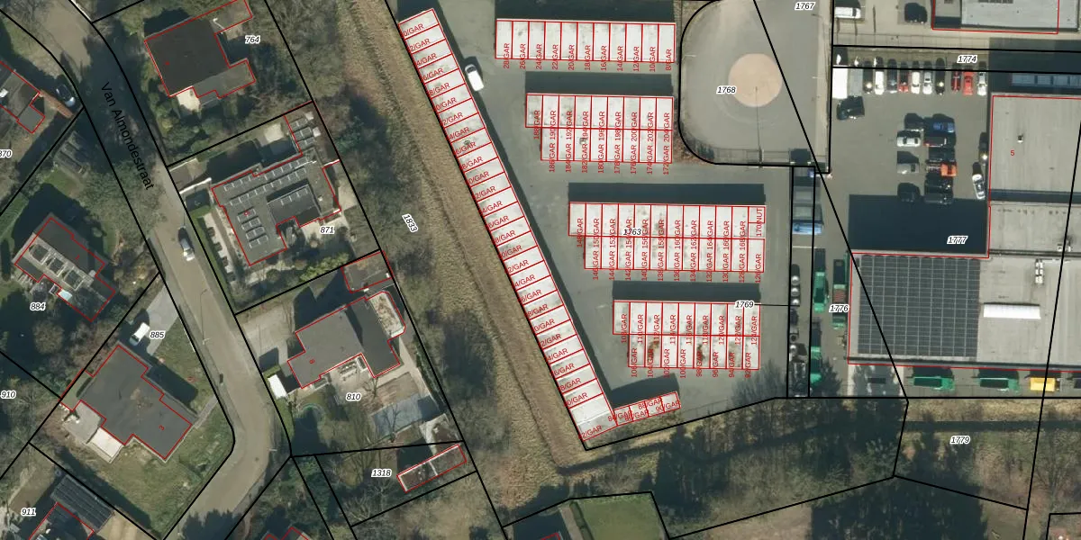 Het perceel waarop het adres ligt is OSS00-F-1763. De afkorting 'OSS00' staat voor kadastrale gemeente Oss. De gemiddelde perceeloppervlakte in de kadastrale gemeente Oss is 2394,42 m². Dit perceel is met zijn 3958 m² dus groter dan gemiddeld. Het grootste perceel in de kadastrale gemeente is 36,1 ha. Het kleinste perceel heeft een oppervlakte van 0 m². Er zijn 99 adressen aanwezig op het perceel. De laatste wijziging in het de Basisregistratie Kadaster (BRK) was op 27-07-2021.