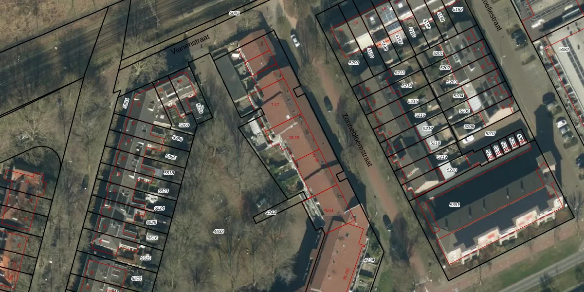 Het perceel waarop Zonnebloemstraat 25 staat heeft een oppervlakte van 3760 m². Dit is een zeer groot perceel. De perceeloppervlakte wordt geregistreerd door het Kadaster. Gedetailleerde informatie over de maten van dit perceel kunt u vinden in het rapport Kadastrale kaart met maatvoering van Zonnebloemstraat 25.