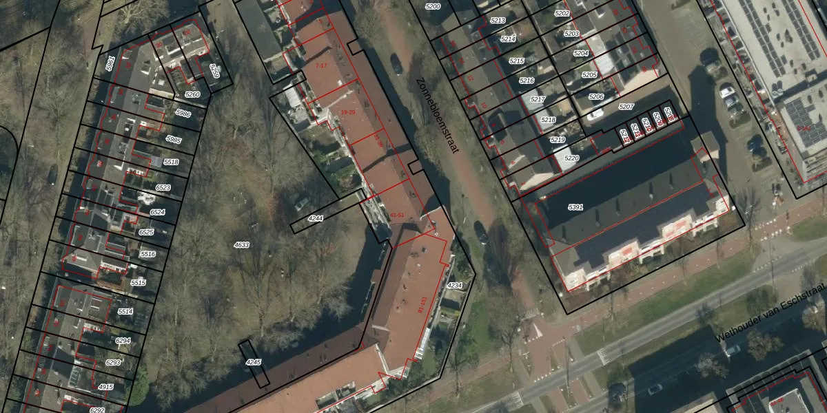 Zonnebloemstraat 41 is gelegen op kadastraal perceel OSS00E4234. Deze kadastrale aanduiding is uniek en wordt gebruikt door het Kadaster om eigendomsrechten en andere zakelijke rechten vast te leggen. Het perceel maakt onderdeel uit van de kadastrale gemeente Oss.