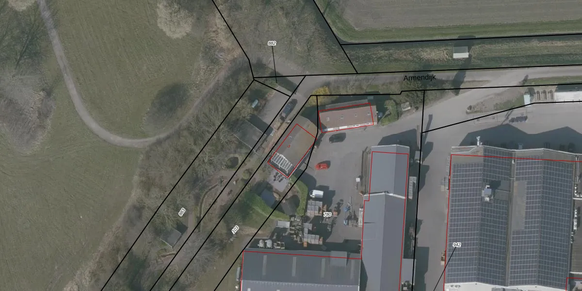 Het perceel waarop Armendijk 3 staat heeft een oppervlakte van 1410 m². Dit is een zeer groot perceel. De perceeloppervlakte wordt geregistreerd door het Kadaster. Gedetailleerde informatie over de maten van dit perceel kunt u vinden in het rapport Kadastrale kaart met maatvoering van Armendijk 3.