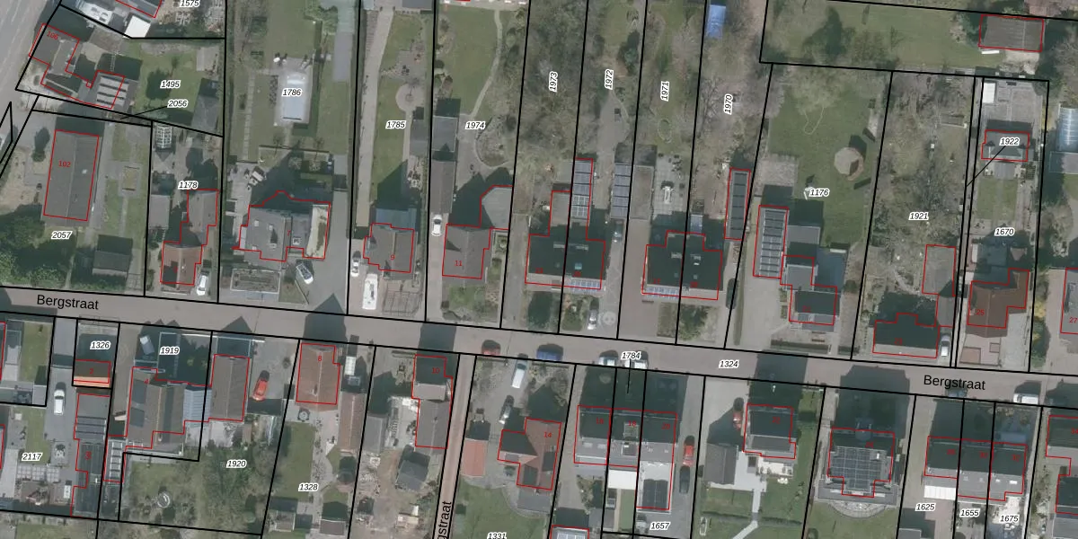Het perceel waarop Bergstraat 13 staat heeft een oppervlakte van 715 m². Dit is een groot perceel. De perceeloppervlakte wordt geregistreerd door het Kadaster. Gedetailleerde informatie over de maten van dit perceel kunt u vinden in het rapport Kadastrale kaart met maatvoering van Bergstraat 13.