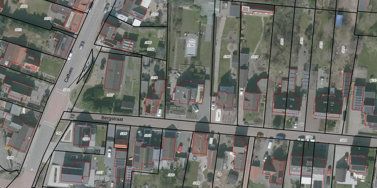 Het perceel waarop Bergstraat 7 staat heeft een oppervlakte van 1620 m². Dit is een zeer groot perceel. De perceeloppervlakte wordt geregistreerd door het Kadaster. Gedetailleerde informatie over de maten van dit perceel kunt u vinden in het rapport Kadastrale kaart met maatvoering van Bergstraat 7.