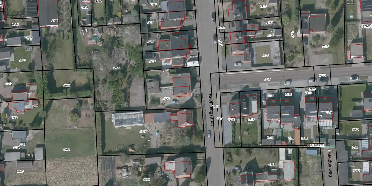 Het perceel waarop Bevrijdingstraat 16 staat heeft een oppervlakte van 655 m². Dit is een groot perceel. De perceeloppervlakte wordt geregistreerd door het Kadaster. Gedetailleerde informatie over de maten van dit perceel kunt u vinden in het rapport Kadastrale kaart met maatvoering van Bevrijdingstraat 16.