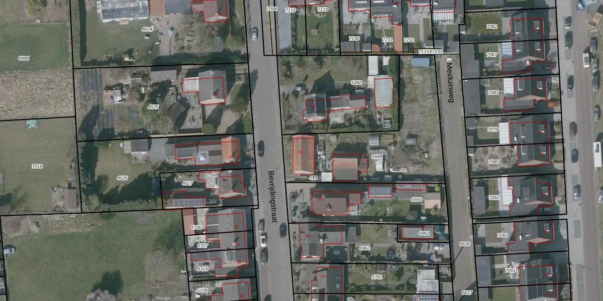 Gebruik de zoekbalk of klik op een perceel voor informatie over de adressen binnen dit perceel.
