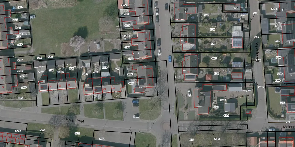 Gebruik de zoekbalk of klik op een perceel voor informatie over de adressen binnen dit perceel.
