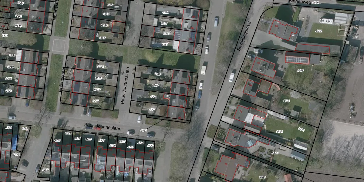 Gebruik de zoekbalk of klik op een perceel voor informatie over de adressen binnen dit perceel.