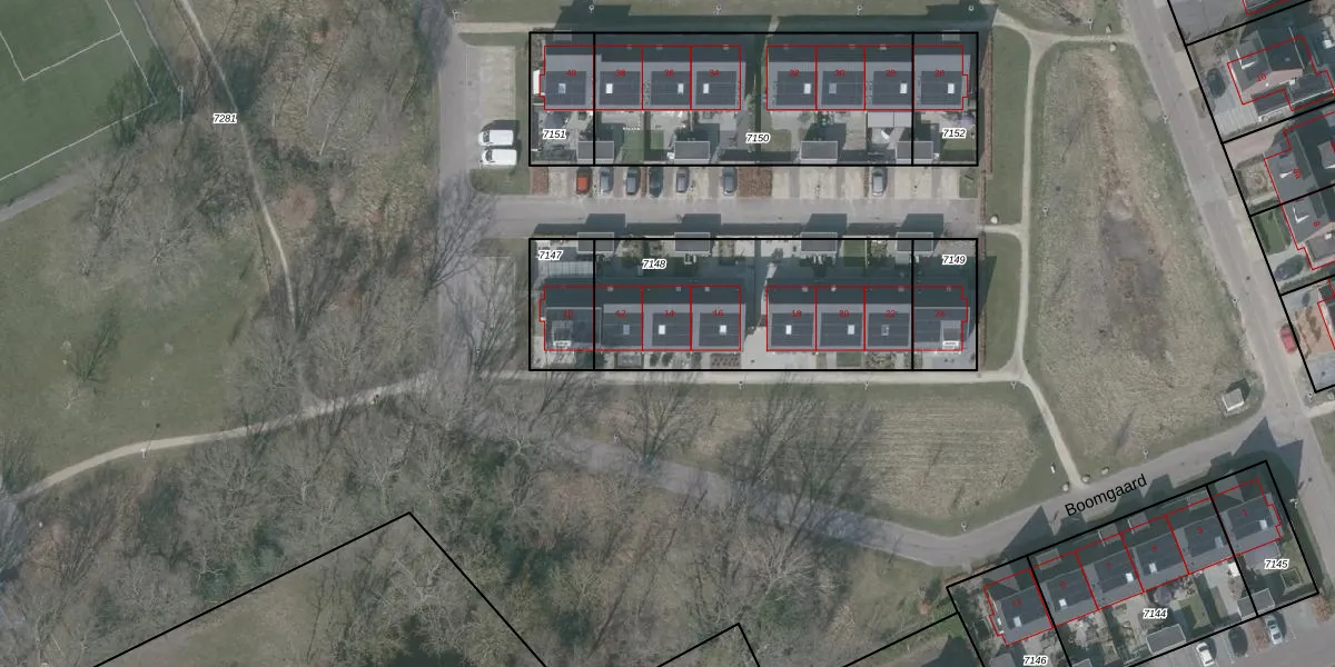 Het perceel waarop Boomgaard 14 staat heeft een oppervlakte van 940 m². Dit is een groot perceel. De perceeloppervlakte wordt geregistreerd door het Kadaster. Gedetailleerde informatie over de maten van dit perceel kunt u vinden in het rapport Kadastrale kaart met maatvoering van Boomgaard 14.