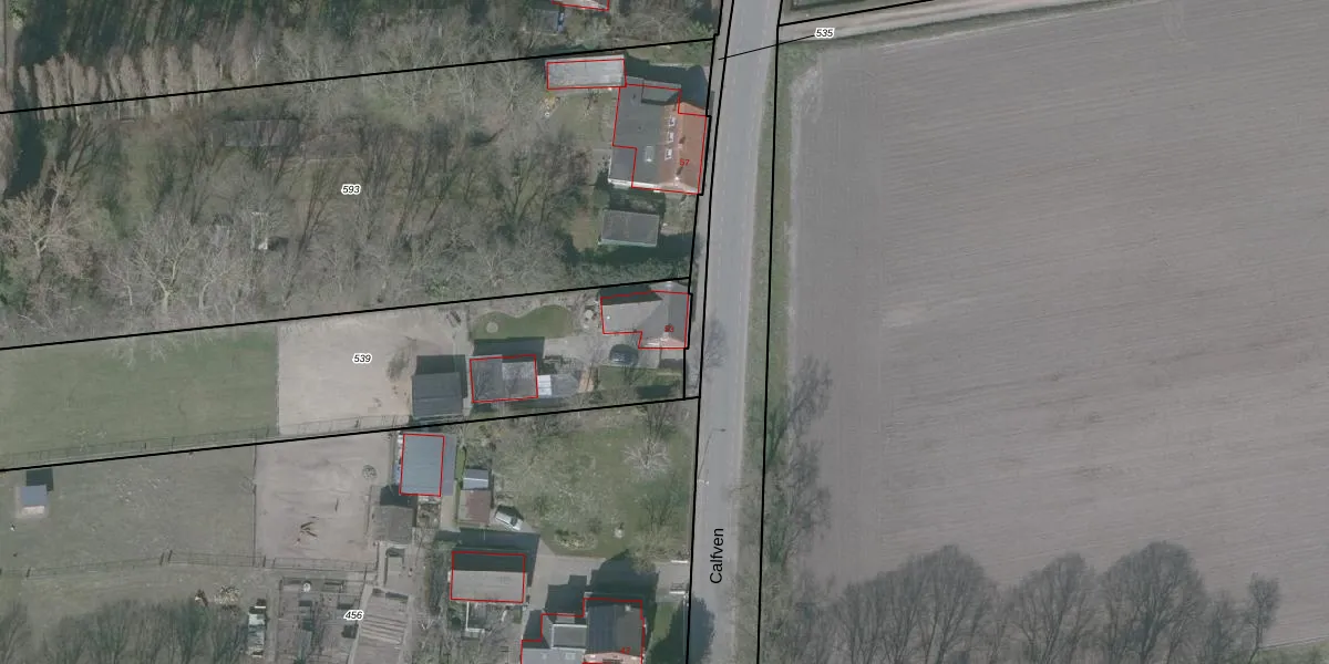 Het perceel waarop Calfven 53 staat heeft een oppervlakte van 1805 m². Dit is een zeer groot perceel. De perceeloppervlakte wordt geregistreerd door het Kadaster. Gedetailleerde informatie over de maten van dit perceel kunt u vinden in het rapport Kadastrale kaart met maatvoering van Calfven 53.