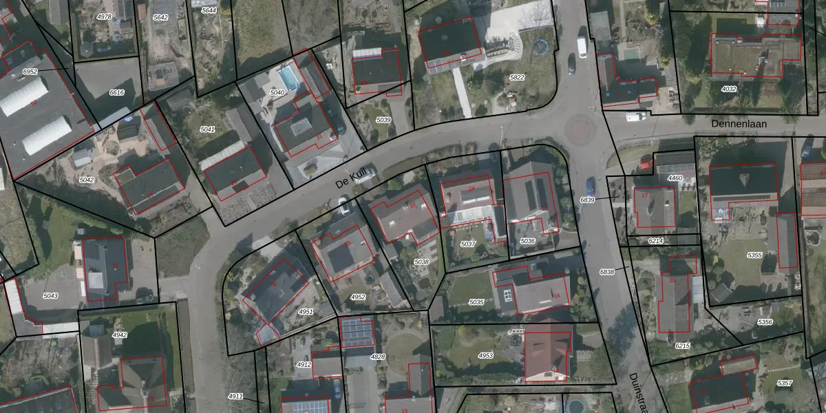 Het perceel waarop De Kuil 22 staat heeft een oppervlakte van 454 m². Dit is een groot perceel. De perceeloppervlakte wordt geregistreerd door het Kadaster. Gedetailleerde informatie over de maten van dit perceel kunt u vinden in het rapport Kadastrale kaart met maatvoering van De Kuil 22.