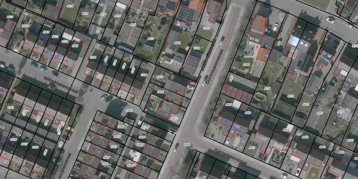 Gebruik de zoekbalk of klik op een perceel voor informatie over de adressen binnen dit perceel.