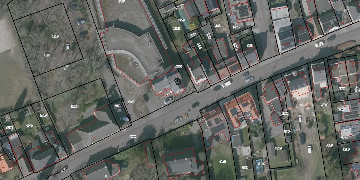 Het perceel waarop Dorpsstraat 12-b staat heeft een oppervlakte van 2960 m². Dit is een zeer groot perceel. De perceeloppervlakte wordt geregistreerd door het Kadaster. Gedetailleerde informatie over de maten van dit perceel kunt u vinden in het rapport Kadastrale kaart met maatvoering van Dorpsstraat 12-b.