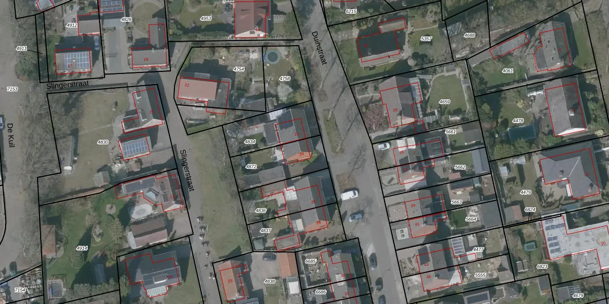 Het perceel waarop Duinstraat 24 staat heeft een oppervlakte van 350 m². Dit is een groot perceel. De perceeloppervlakte wordt geregistreerd door het Kadaster. Gedetailleerde informatie over de maten van dit perceel kunt u vinden in het rapport Kadastrale kaart met maatvoering van Duinstraat 24.