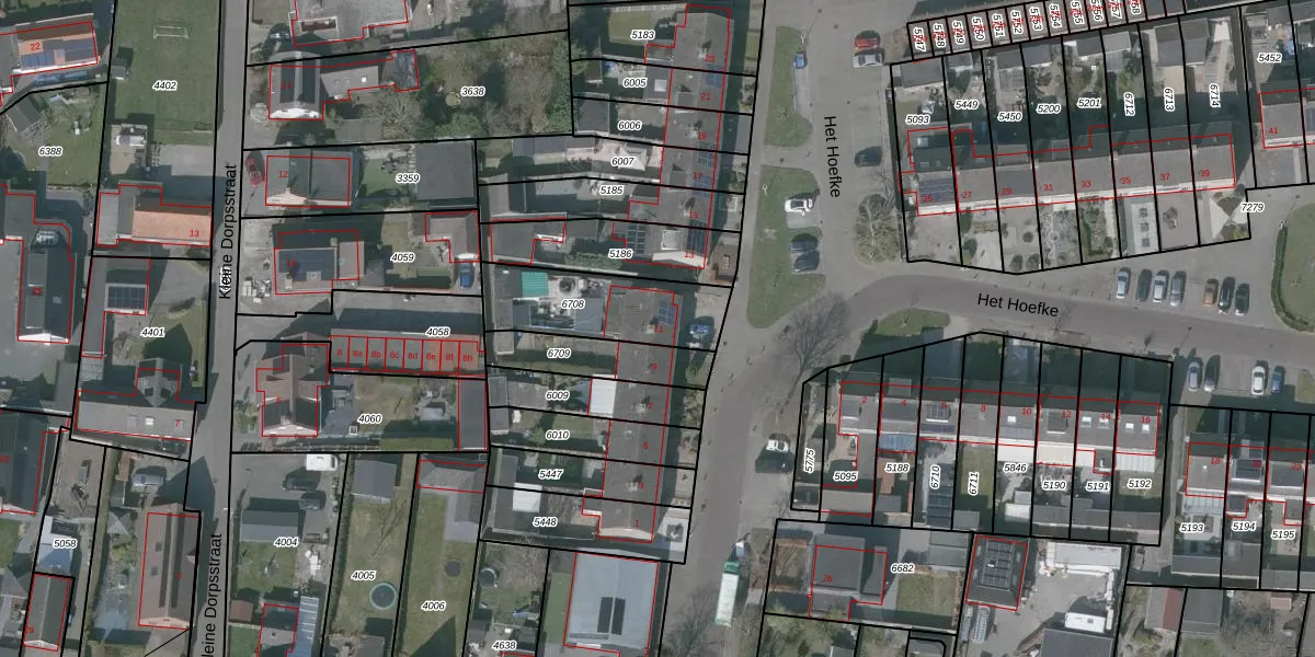 Gebruik de zoekbalk of klik op een perceel voor informatie over de adressen binnen dit perceel.