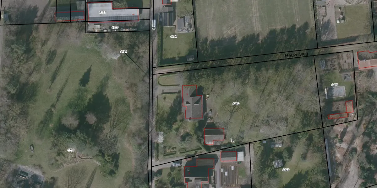 Het perceel waarop Heuvelweg 7 staat heeft een oppervlakte van 3760 m². Dit is een zeer groot perceel. De perceeloppervlakte wordt geregistreerd door het Kadaster. Gedetailleerde informatie over de maten van dit perceel kunt u vinden in het rapport Kadastrale kaart met maatvoering van Heuvelweg 7.