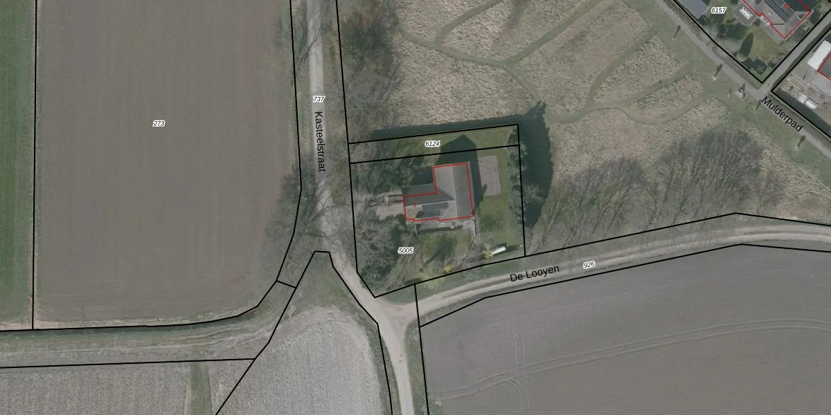 Het perceel waarop Kasteelstraat 5 staat heeft een oppervlakte van 1189 m². Dit is een zeer groot perceel. De perceeloppervlakte wordt geregistreerd door het Kadaster. Gedetailleerde informatie over de maten van dit perceel kunt u vinden in het rapport Kadastrale kaart met maatvoering van Kasteelstraat 5.