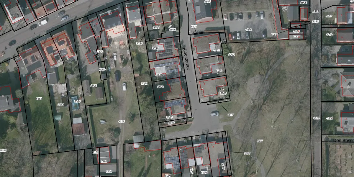 Kloosterhof 9 is gelegen op kadastraal perceel OSD00D5899. Deze kadastrale aanduiding is uniek en wordt gebruikt door het Kadaster om eigendomsrechten en andere zakelijke rechten vast te leggen. Het perceel maakt onderdeel uit van de kadastrale gemeente Ossendrecht.