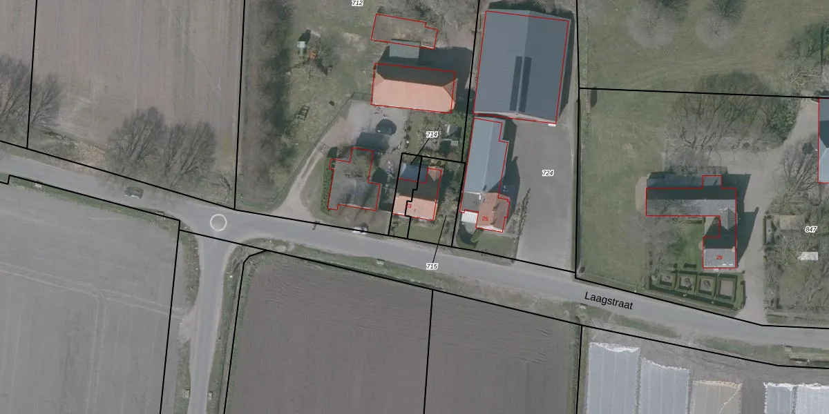 Laagstraat 23 is gelegen op kadastraal perceel OSD00E715. Deze kadastrale aanduiding is uniek en wordt gebruikt door het Kadaster om eigendomsrechten en andere zakelijke rechten vast te leggen. Het perceel maakt onderdeel uit van de kadastrale gemeente Ossendrecht.
