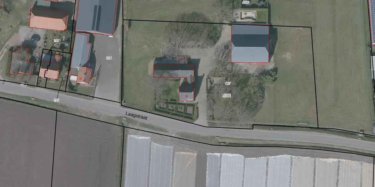 Laagstraat 29 is gelegen op kadastraal perceel OSD00E847. Deze kadastrale aanduiding is uniek en wordt gebruikt door het Kadaster om eigendomsrechten en andere zakelijke rechten vast te leggen. Het perceel maakt onderdeel uit van de kadastrale gemeente Ossendrecht.