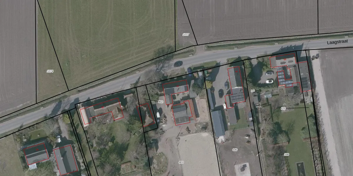 Het perceel waarop Laagstraat 40 staat heeft een oppervlakte van 3424 m². Dit is een zeer groot perceel. De perceeloppervlakte wordt geregistreerd door het Kadaster. Gedetailleerde informatie over de maten van dit perceel kunt u vinden in het rapport Kadastrale kaart met maatvoering van Laagstraat 40.