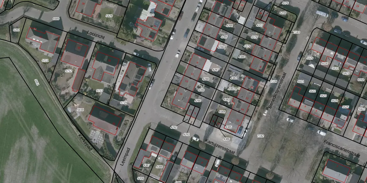 Gebruik de zoekbalk of klik op een perceel voor informatie over de adressen binnen dit perceel.