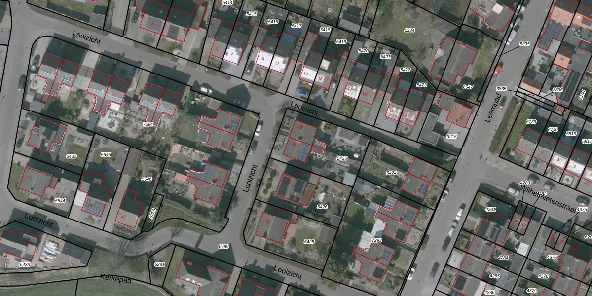 Het perceel waarop Looizicht 25 staat heeft een oppervlakte van 534 m². Dit is een groot perceel. De perceeloppervlakte wordt geregistreerd door het Kadaster. Gedetailleerde informatie over de maten van dit perceel kunt u vinden in het rapport Kadastrale kaart met maatvoering van Looizicht 25.
