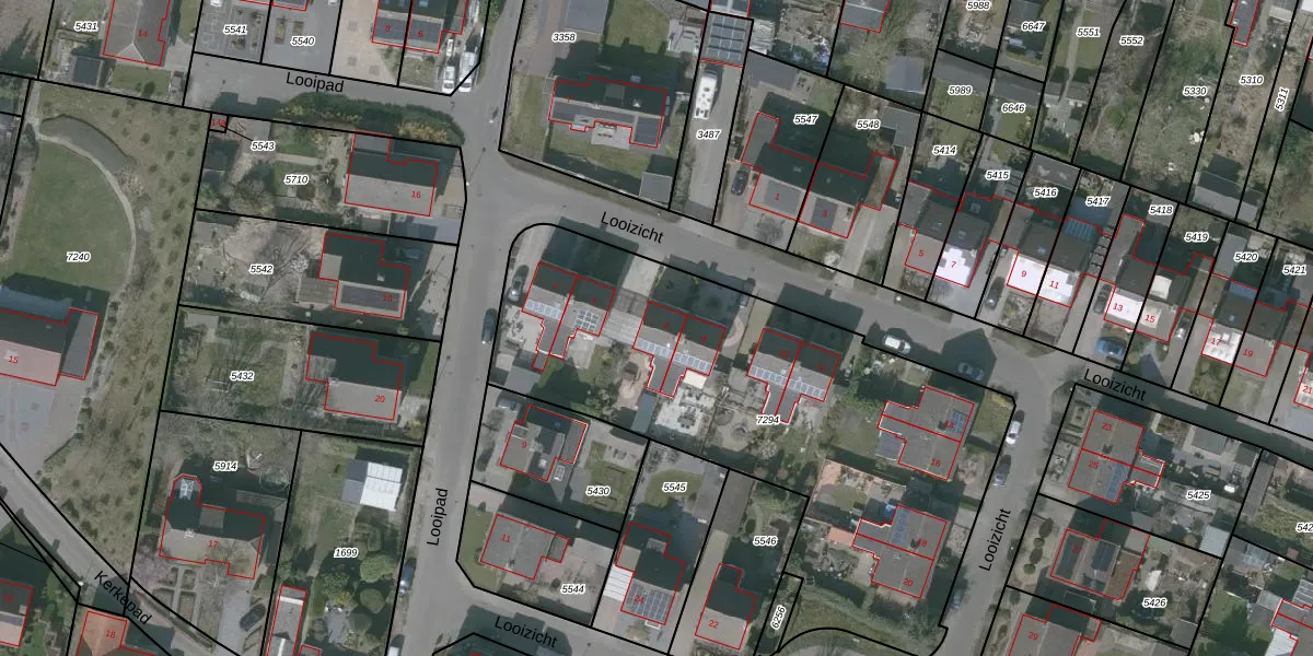 Het perceel waarop Looizicht 6 staat heeft een oppervlakte van 2468 m². Dit is een zeer groot perceel. De perceeloppervlakte wordt geregistreerd door het Kadaster. Gedetailleerde informatie over de maten van dit perceel kunt u vinden in het rapport Kadastrale kaart met maatvoering van Looizicht 6.