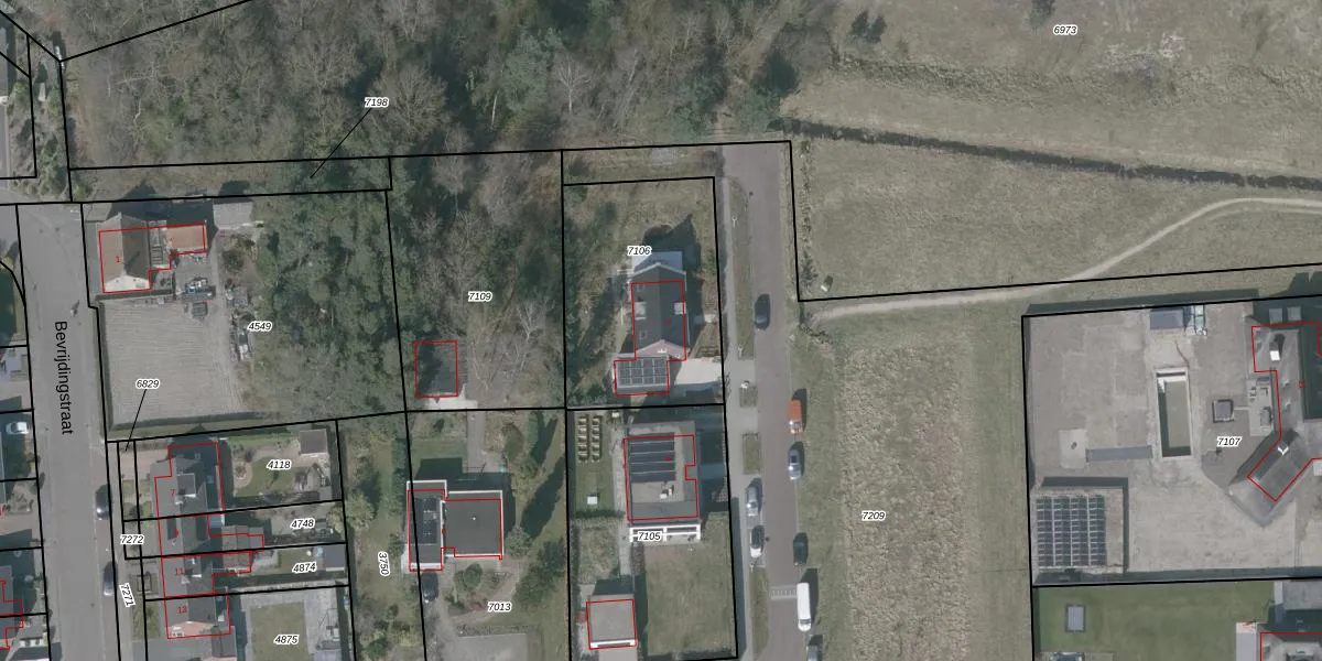 Gebruik de zoekbalk of klik op een perceel voor informatie over de adressen binnen dit perceel.