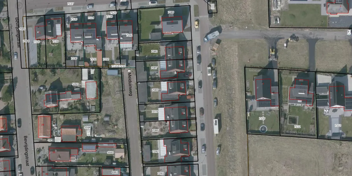 Gebruik de zoekbalk of klik op een perceel voor informatie over de adressen binnen dit perceel.