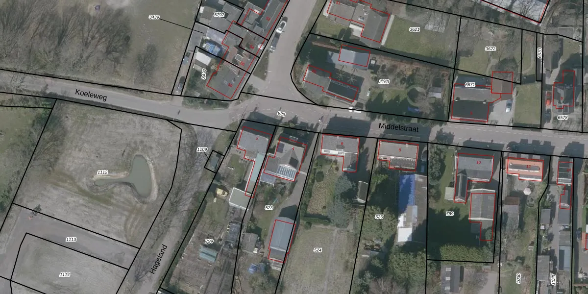 Het perceel waarop Middelstraat 4 staat heeft een oppervlakte van 1070 m². Dit is een zeer groot perceel. De perceeloppervlakte wordt geregistreerd door het Kadaster. Gedetailleerde informatie over de maten van dit perceel kunt u vinden in het rapport Kadastrale kaart met maatvoering van Middelstraat 4.