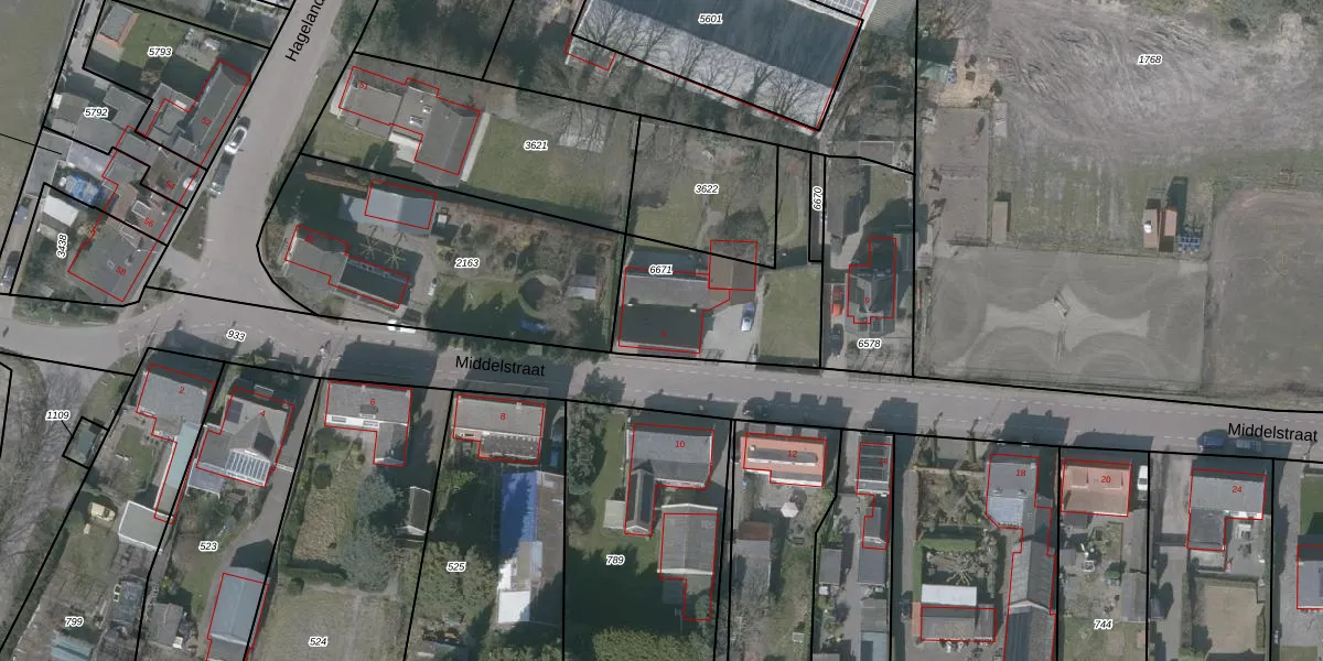 Het perceel waarop Middelstraat 5 staat heeft een oppervlakte van 590 m². Dit is een groot perceel. De perceeloppervlakte wordt geregistreerd door het Kadaster. Gedetailleerde informatie over de maten van dit perceel kunt u vinden in het rapport Kadastrale kaart met maatvoering van Middelstraat 5.
