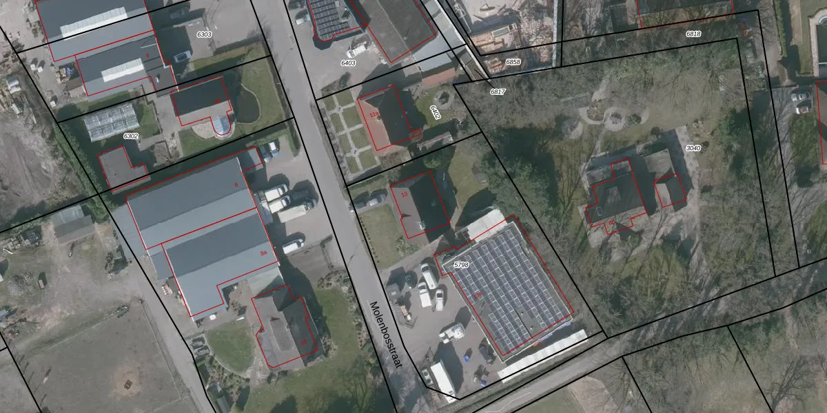 Het perceel waarop Molenbosstraat 13 staat heeft een oppervlakte van 2255 m². Dit is een zeer groot perceel. De perceeloppervlakte wordt geregistreerd door het Kadaster. Gedetailleerde informatie over de maten van dit perceel kunt u vinden in het rapport Kadastrale kaart met maatvoering van Molenbosstraat 13.