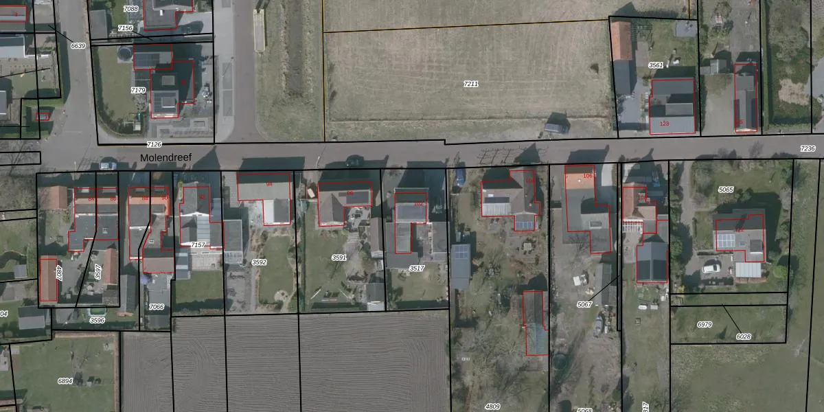 Het perceel waarop Molendreef 102 staat heeft een oppervlakte van 555 m². Dit is een groot perceel. De perceeloppervlakte wordt geregistreerd door het Kadaster. Gedetailleerde informatie over de maten van dit perceel kunt u vinden in het rapport Kadastrale kaart met maatvoering van Molendreef 102.