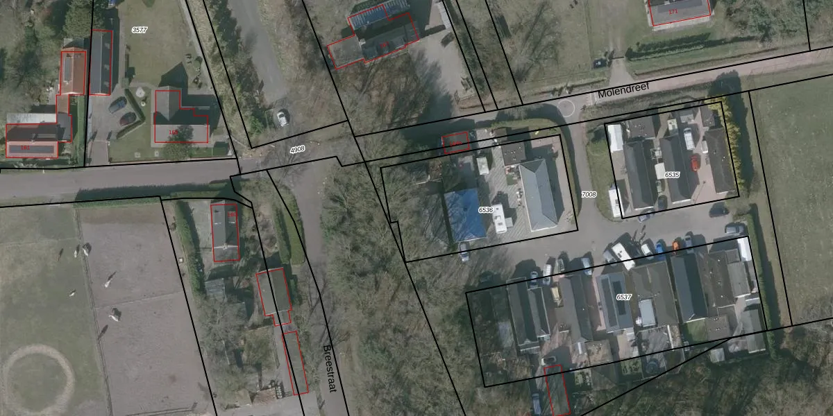Het perceel waarop Molendreef 162 staat heeft een oppervlakte van 1015 m². Dit is een zeer groot perceel. De perceeloppervlakte wordt geregistreerd door het Kadaster. Gedetailleerde informatie over de maten van dit perceel kunt u vinden in het rapport Kadastrale kaart met maatvoering van Molendreef 162.
