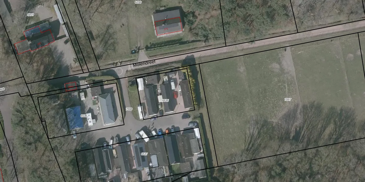 Het perceel waarop Molendreef 174 staat heeft een oppervlakte van 660 m². Dit is een groot perceel. De perceeloppervlakte wordt geregistreerd door het Kadaster. Gedetailleerde informatie over de maten van dit perceel kunt u vinden in het rapport Kadastrale kaart met maatvoering van Molendreef 174.