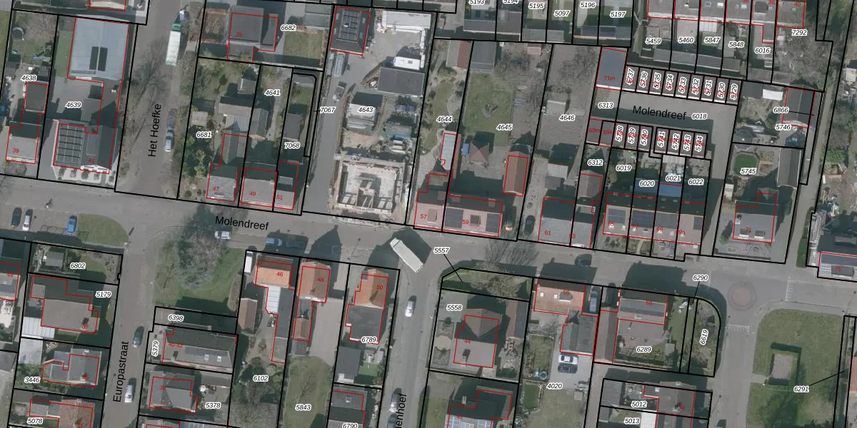 Gebruik de zoekbalk of klik op een perceel voor informatie over de adressen binnen dit perceel.