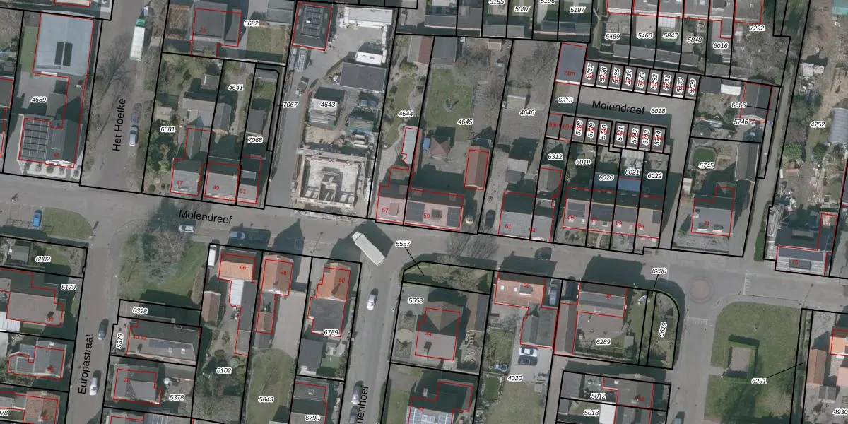 Het perceel waarop Molendreef 59 staat heeft een oppervlakte van 830 m². Dit is een groot perceel. De perceeloppervlakte wordt geregistreerd door het Kadaster. Gedetailleerde informatie over de maten van dit perceel kunt u vinden in het rapport Kadastrale kaart met maatvoering van Molendreef 59.
