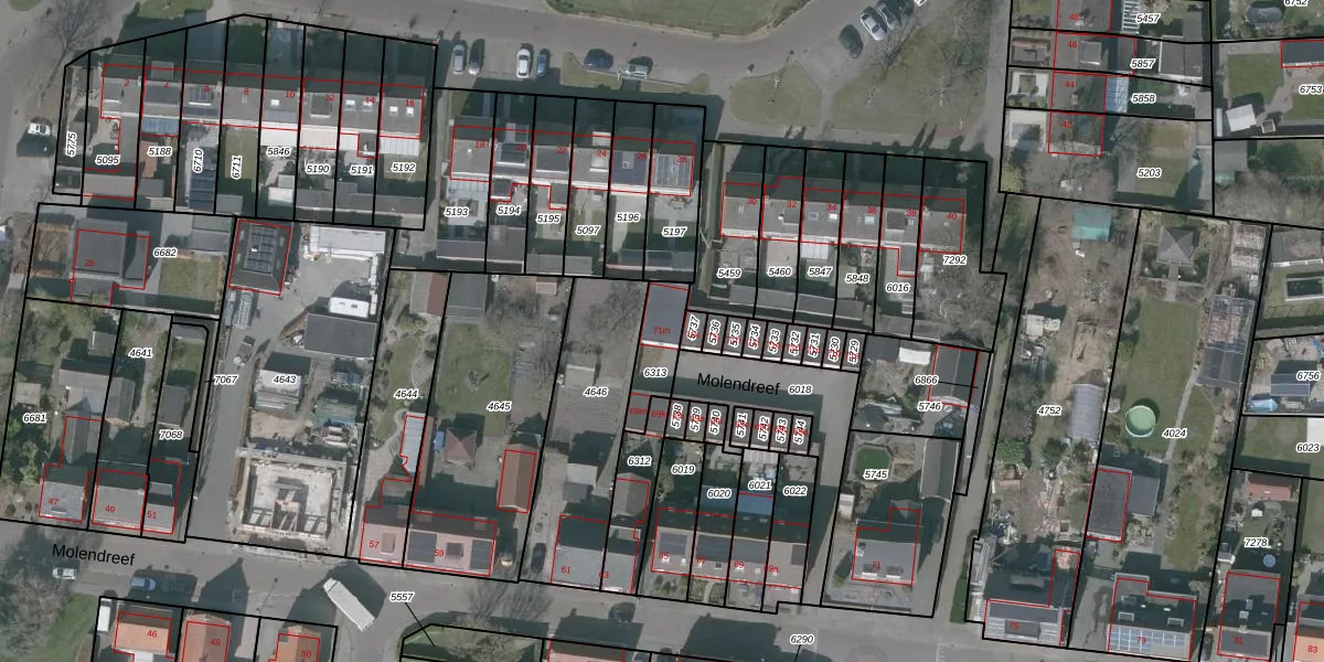 Het perceel waarop Molendreef 71-m staat heeft een oppervlakte van 123 m². Dit is een middelgroot perceel. De perceeloppervlakte wordt geregistreerd door het Kadaster. Gedetailleerde informatie over de maten van dit perceel kunt u vinden in het rapport Kadastrale kaart met maatvoering van Molendreef 71-m.