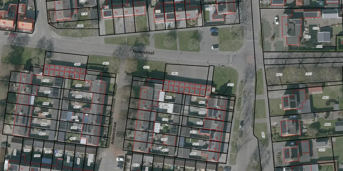 Molendreef 78-a is gelegen op kadastraal perceel OSD00D3851. Deze kadastrale aanduiding is uniek en wordt gebruikt door het Kadaster om eigendomsrechten en andere zakelijke rechten vast te leggen. Het perceel maakt onderdeel uit van de kadastrale gemeente Ossendrecht.
