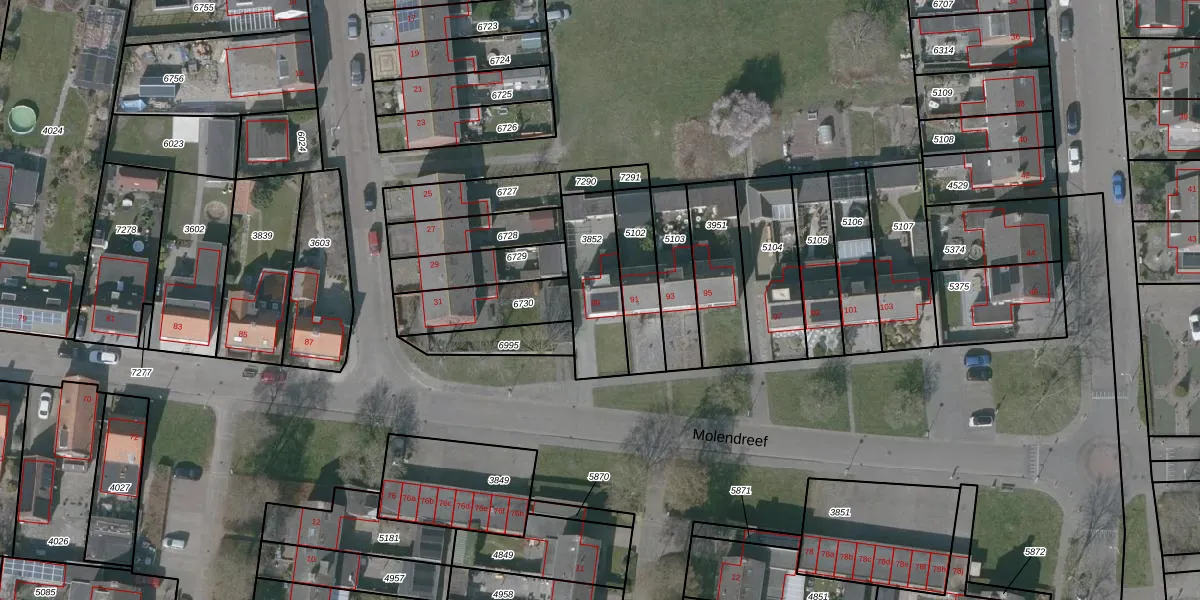 Molendreef 89 is gelegen op kadastraal perceel OSD00D3852. Deze kadastrale aanduiding is uniek en wordt gebruikt door het Kadaster om eigendomsrechten en andere zakelijke rechten vast te leggen. Het perceel maakt onderdeel uit van de kadastrale gemeente Ossendrecht.
