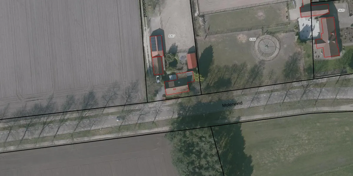 Moleneind 63 is gelegen op kadastraal perceel OSD00D6357. Deze kadastrale aanduiding is uniek en wordt gebruikt door het Kadaster om eigendomsrechten en andere zakelijke rechten vast te leggen. Het perceel maakt onderdeel uit van de kadastrale gemeente Ossendrecht.