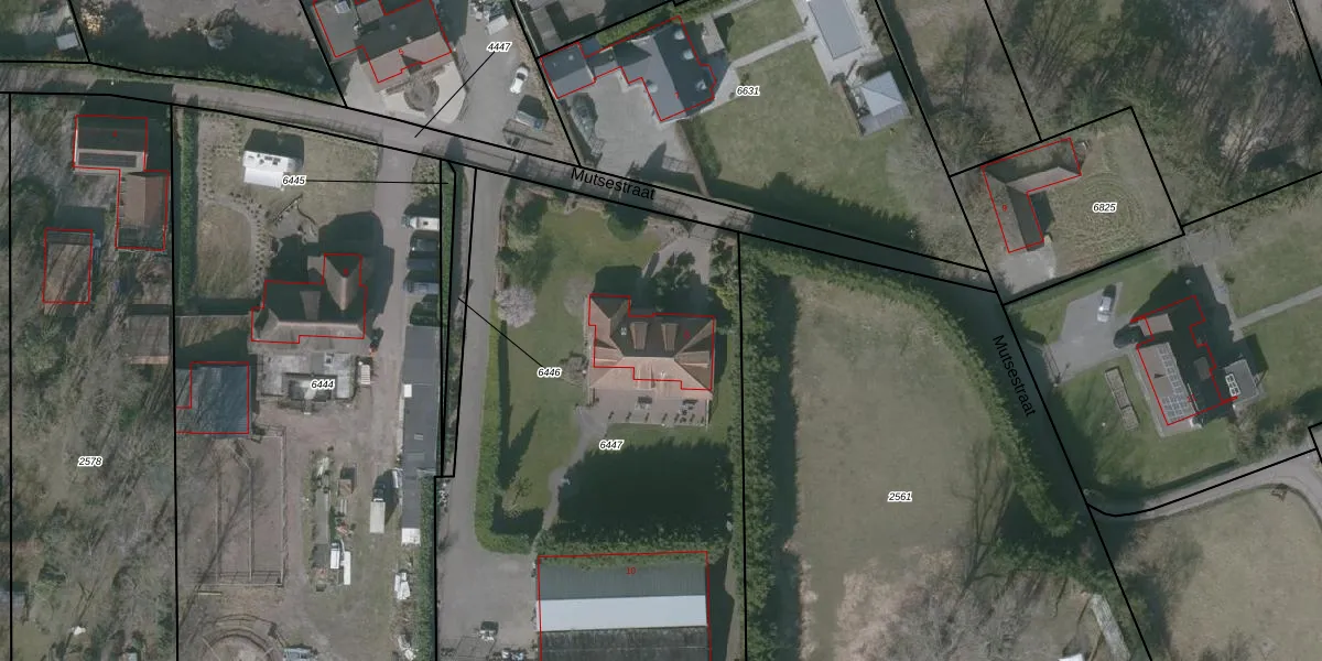 Het perceel waarop Mutsestraat 8 staat heeft een oppervlakte van 3825 m². Dit is een zeer groot perceel. De perceeloppervlakte wordt geregistreerd door het Kadaster. Gedetailleerde informatie over de maten van dit perceel kunt u vinden in het rapport Kadastrale kaart met maatvoering van Mutsestraat 8.