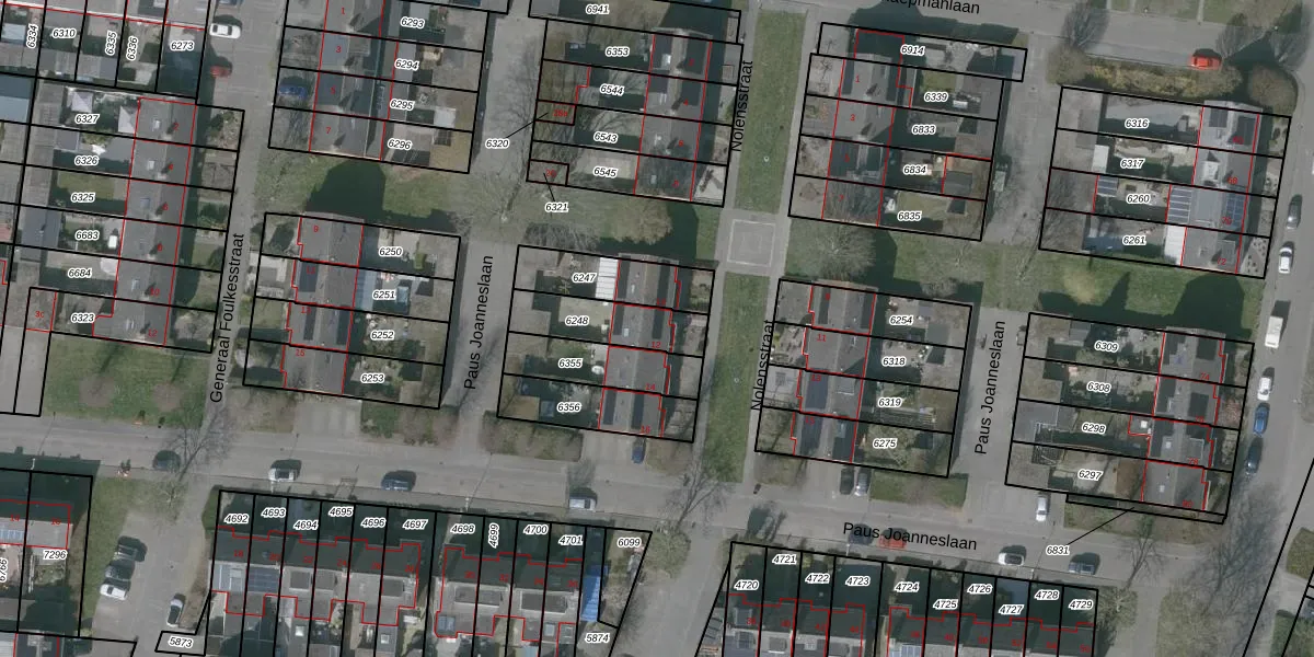 Gebruik de zoekbalk of klik op een perceel voor informatie over de adressen binnen dit perceel.