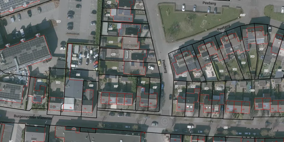 Het perceel waarop Peeberg 1 staat heeft een oppervlakte van 442 m². Dit is een groot perceel. De perceeloppervlakte wordt geregistreerd door het Kadaster. Gedetailleerde informatie over de maten van dit perceel kunt u vinden in het rapport Kadastrale kaart met maatvoering van Peeberg 1.