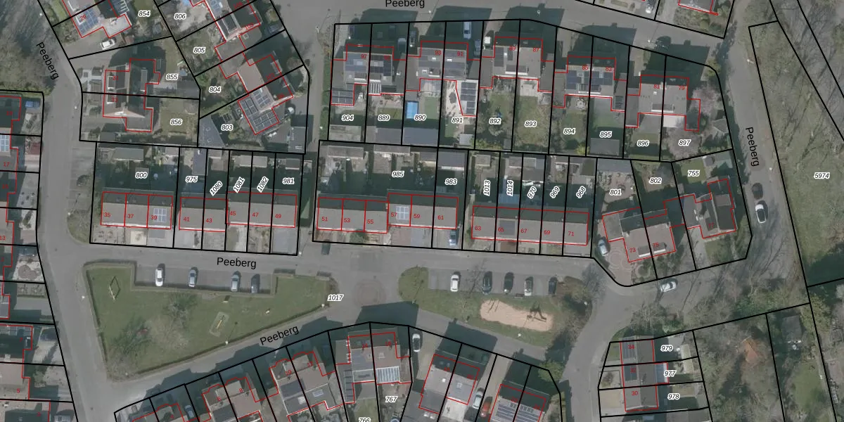 Het perceel waarop Peeberg 59 staat heeft een oppervlakte van 674 m². Dit is een groot perceel. De perceeloppervlakte wordt geregistreerd door het Kadaster. Gedetailleerde informatie over de maten van dit perceel kunt u vinden in het rapport Kadastrale kaart met maatvoering van Peeberg 59.