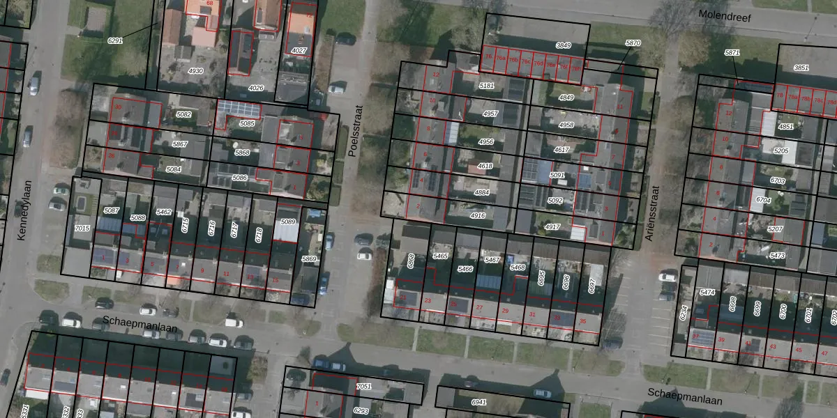 Gebruik de zoekbalk of klik op een perceel voor informatie over de adressen binnen dit perceel.