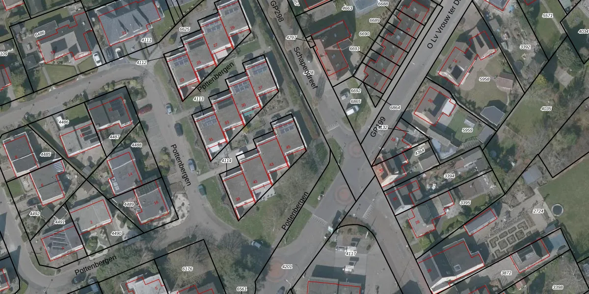 Het perceel waarop Pottenbergen 45 staat heeft een oppervlakte van 472 m². Dit is een groot perceel. De perceeloppervlakte wordt geregistreerd door het Kadaster. Gedetailleerde informatie over de maten van dit perceel kunt u vinden in het rapport Kadastrale kaart met maatvoering van Pottenbergen 45.